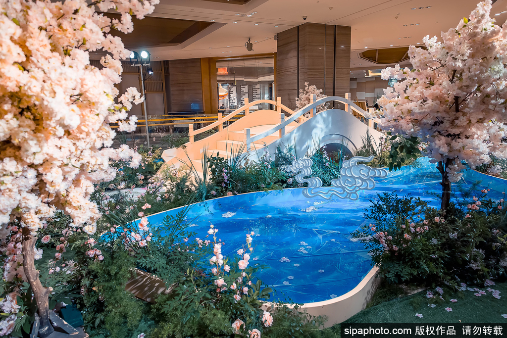 Dort stand noch eine kleine Brücke, um die ringsherum Pfirsichbäume blühten. Die gefallenen Blüten schwebten auf dem Wasser. Das alles bildete eine poetische und romantische Szene.