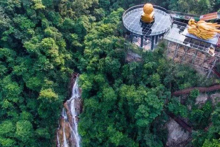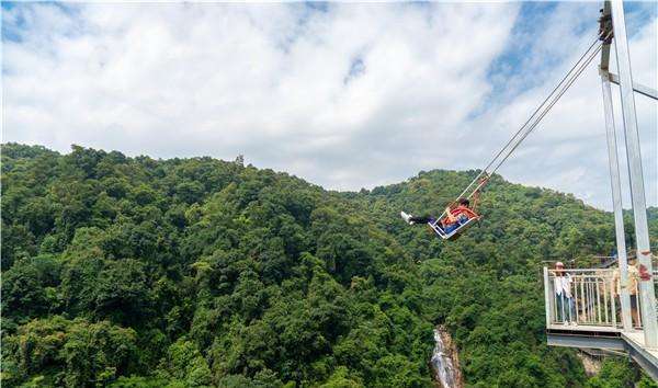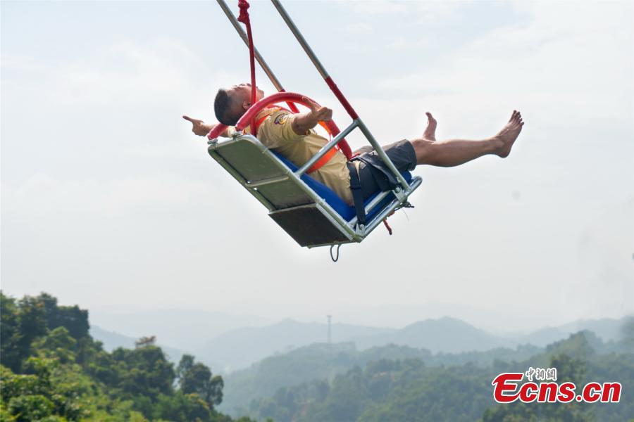 Die Schaukel über einem 198 Meter hohen Wasserfall auf dem Berg Tianzi in Qingyuan wurde offiziell nach einem viermonatigen Probebetrieb eröffnet.