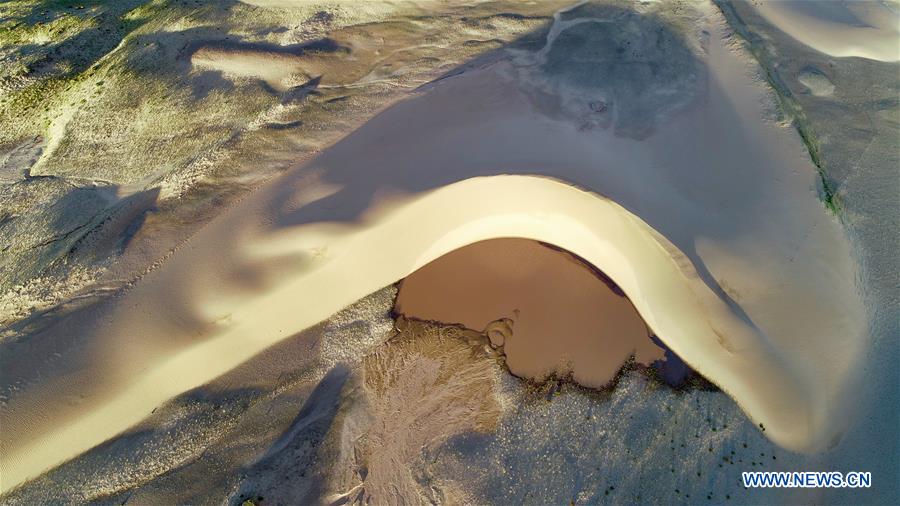 Sanddünen in der Nähe der Quelle des Flusses Yarlung Zangbo im Kreis Zhongba in Xigaze.
