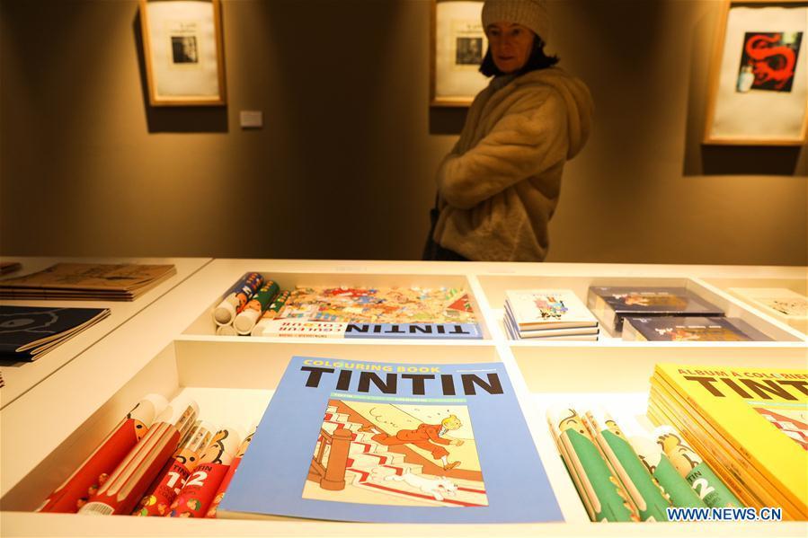 Eine Kundin betrachtet Produkte zur Comic-Serie „Tim und Struppi" in einem Geschäft im belgischen Brüssel (Foto vom 10. Januar 2019).