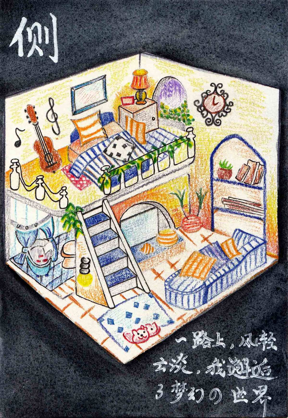 Die Zeichnung einer idealen Wohnung für Alleinlebende, gezeichnet von einem Schüler der Mittelschüler Nummer 2 in Changzhou.