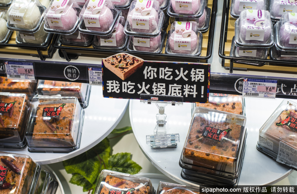 In einem Laden in Chengdu, der Hauptstadt der südwestchinesischen Provinz Sichuan, genießt eine Neuheit die Aufmerksamkeit der Kunden. Sie sieht aus wie ein Stück Sülze für die Brühe des Feuertopfes, ist aber tatsächlich ein Kuchen.