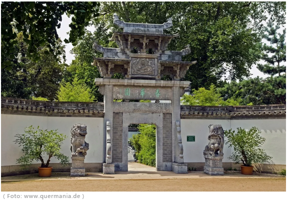 “春华园”选址法兰克福古老的贝特曼公园(Bethmannpark)内,建成于1985年。当时,广州市与法兰克福市正准备缔结友好城市,这座园林便作为中方礼物,由中国专家组织建造,并取名“春华园”。