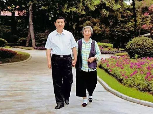 Auf dem ersten Bild schiebt Xi seinen Vater im Rollstuhl. Das zweite Foto zeigt ihn beim Spaziergang mit seiner Mutter. Die Familie zu schätzen und den Eltern gegenüber pietätvoll zu sein, diese Tugend ist im Herzen Xi Jinpings fest verwurzelt. So wie er sich um seine Eltern kümmert, denkt er auch oft an die Senioren im ganzen Land. Da die chinesische Gesellschaft zunehmend altert, sorgt er dafür, dass die alten Menschen in China einen glücklichen Lebensabend verbringen können.