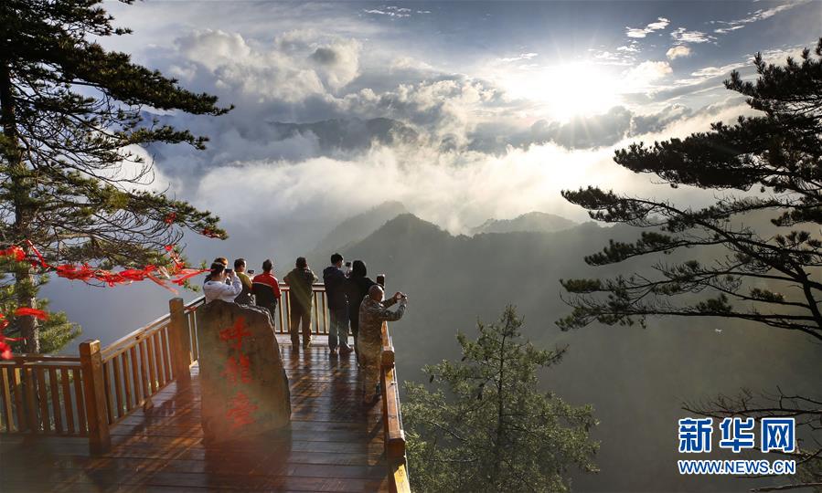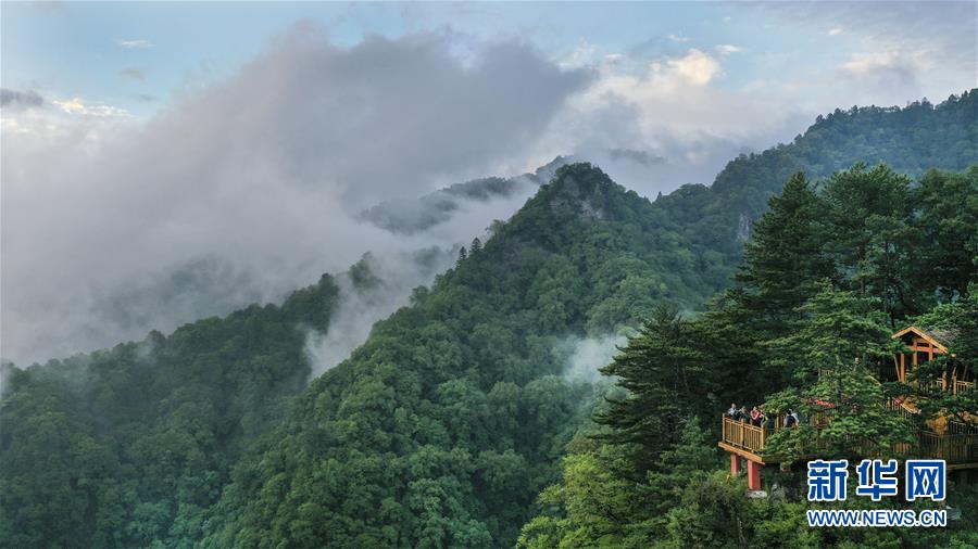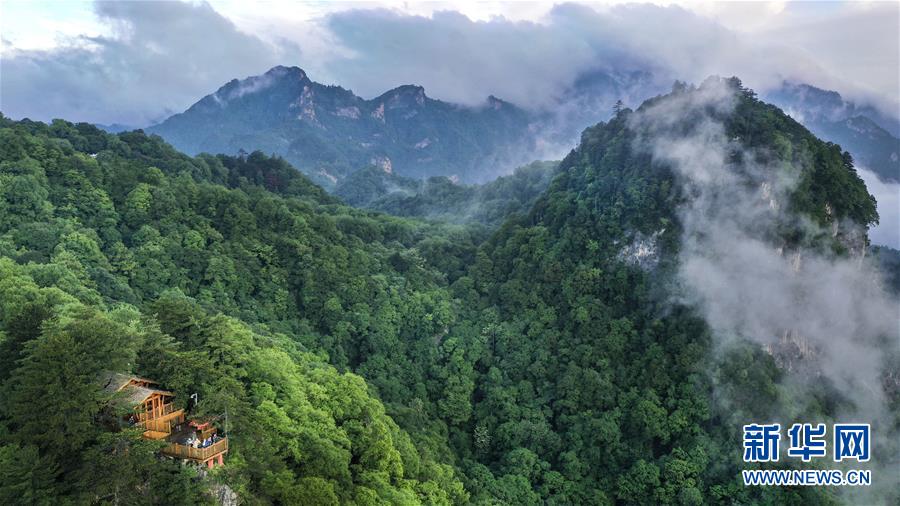 Auf der Aussichtsplattform Hulongtai im Nationalpark Wulongdong erfreuen sich Touristen des herrlichen Anblicks (Foto vom 30. Mai 2019, Tao Ming/ Xinhua).