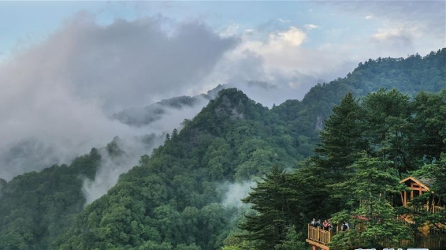 Am Donnerstag ist der Wulongdong-Nationalpark in Lüeyang nach einem Regen in leichten Nebel gehüllt, was eine traumhafte Szene schuf. Das Urlaubsgebiet liegt an der Grenze zwischen den westchinesischen Provinzen Shaanxi, Gansu und Sichuan. Es ist eine Landschaft mit grotesken Gipfeln und hoch aufragenden Bäumen und stellt für Wanderer und Touristen eine vielversprechende Attraktion dar.