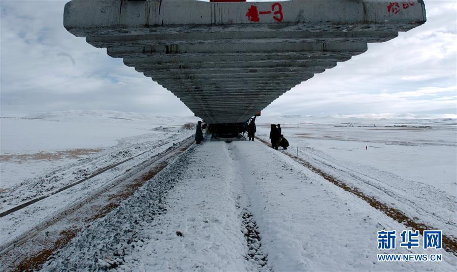 Baustelle der Qinghai-Tibet-Eisenbahn am 9. Oktober 2004