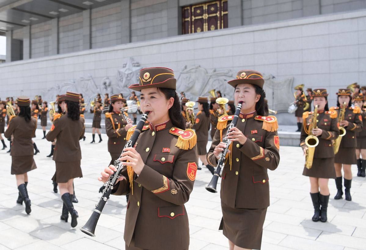 Eine Militärkapelle spielt auf dem Platz vor dem Kumsusan-Palast der Sonne.