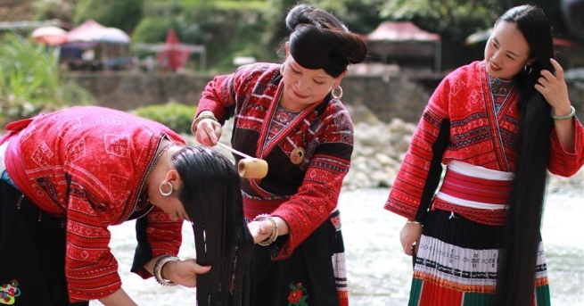 Frauen haben hier die Tradition, lange Haare zu haben. Sie verwenden fermentiertes Reiswasser - das Wasser nach dem Reisspülen - zusammen mit natürlichen Zutaten wie Teesamen und Orangenschalen, um ihre Haare zu waschen. Das natürliche Shampoo hält das Haar gesund, geschmeidig und glänzend.