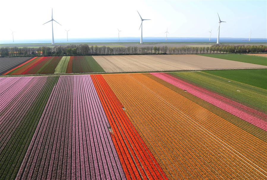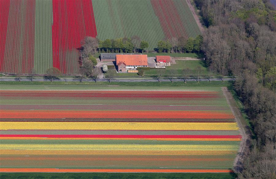 Die farbigen Tulpenfelder in den Niederlanden. Die Tulpe ist die Nationalblume der Niederlande.