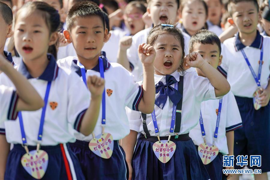 Die Schulanfänger an der Dengshikou-Schule legen den Eid ab.