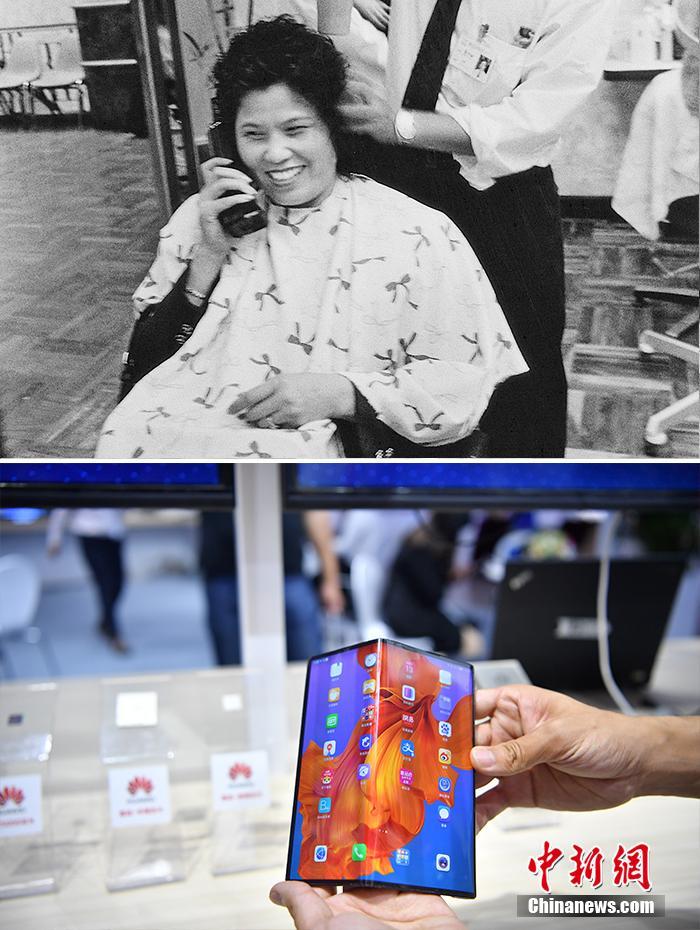 Oben: Das Foto wurde imJahr 1996 gemacht. In einem Friseurladen in der südchinesischen Stadt Guangdong benutzte eine Kundin ihr altmodisches Mobiltelefon. Foto von Peng Zhenge/ CNS