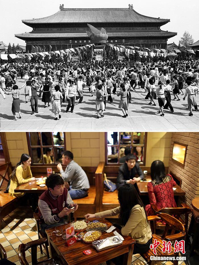 Oben: Im Jahr 1984 tanzten über 800 junge Leute im Kulturpalast des werktätigen Volkes in Beijing. Foto von Zheng Ruide/ CNS