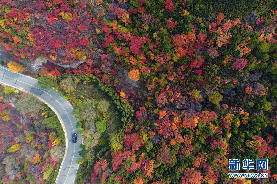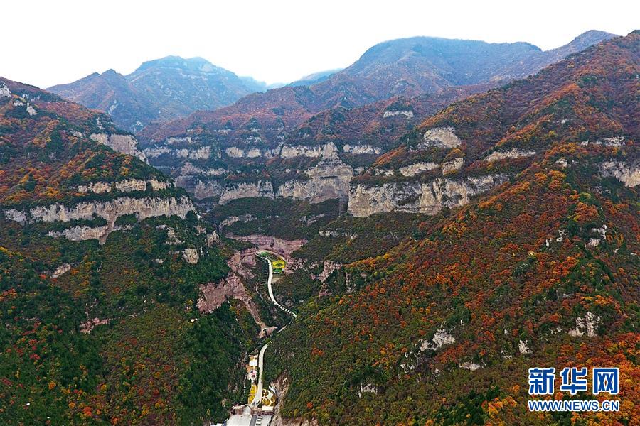 Ein Drohnenfoto vom Taiyue-Gebirge im Kreis Lingshi in der Provinz Shanxi.