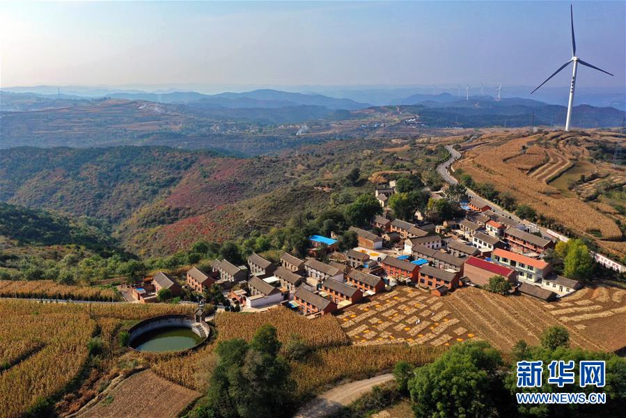 Das Dorf Caojiagou im Kreis Liulin, Shanxi aus der Vogelperspektive.