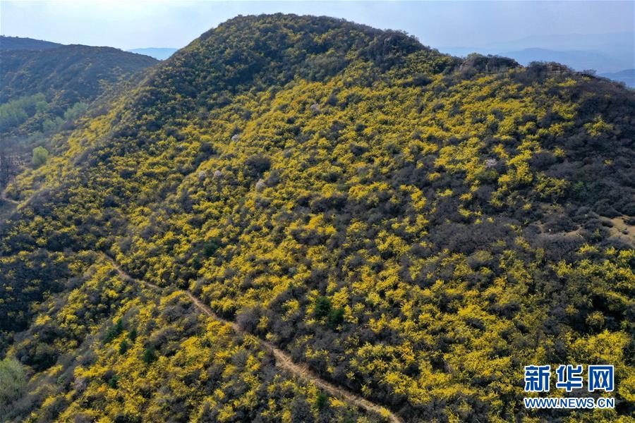 Das Guanshan-Gebirge im Kreis Pingding wird im Frühling von gelben Blumen dekoriert.