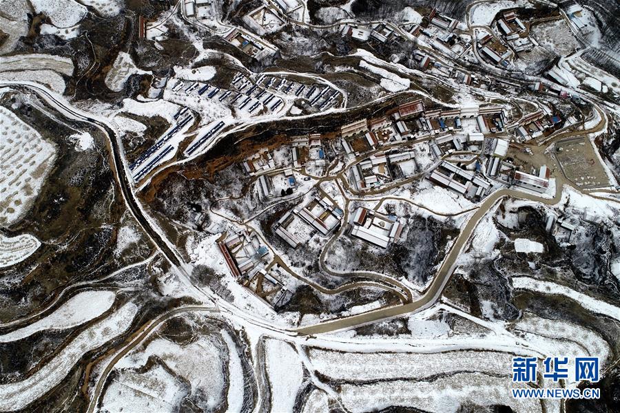 Der Schnee bedeckt das Dorf Wangzhuanggou im Kreis Wuxiang, Shanxi.