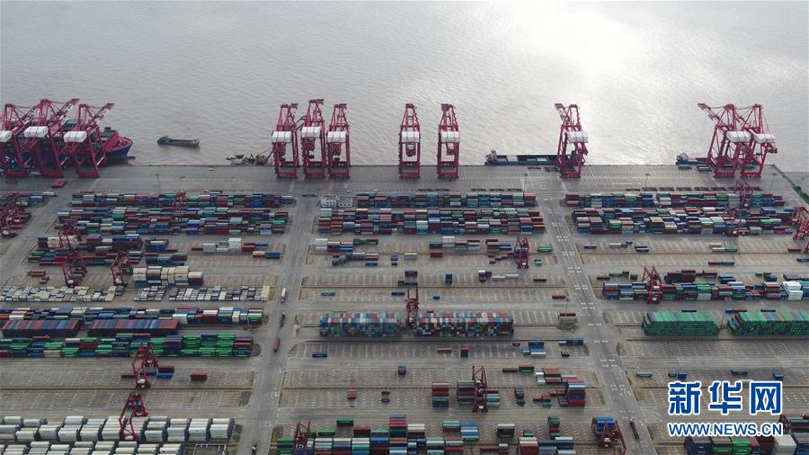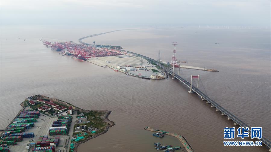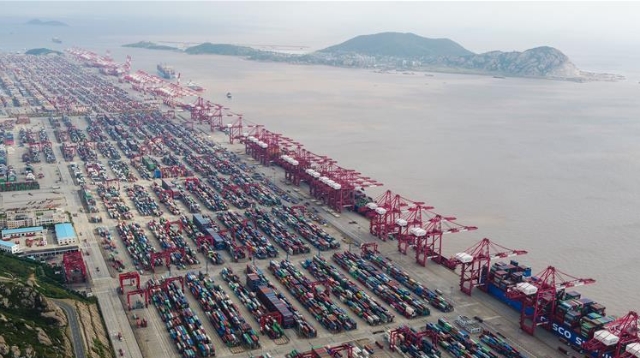 Der vierte automatisierte Containerterminal des Tiefwasserhafens Yangshan bei Shanghai (Foto vom 16. Oktober)