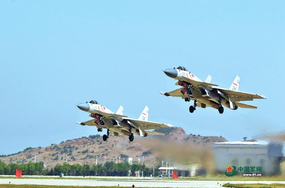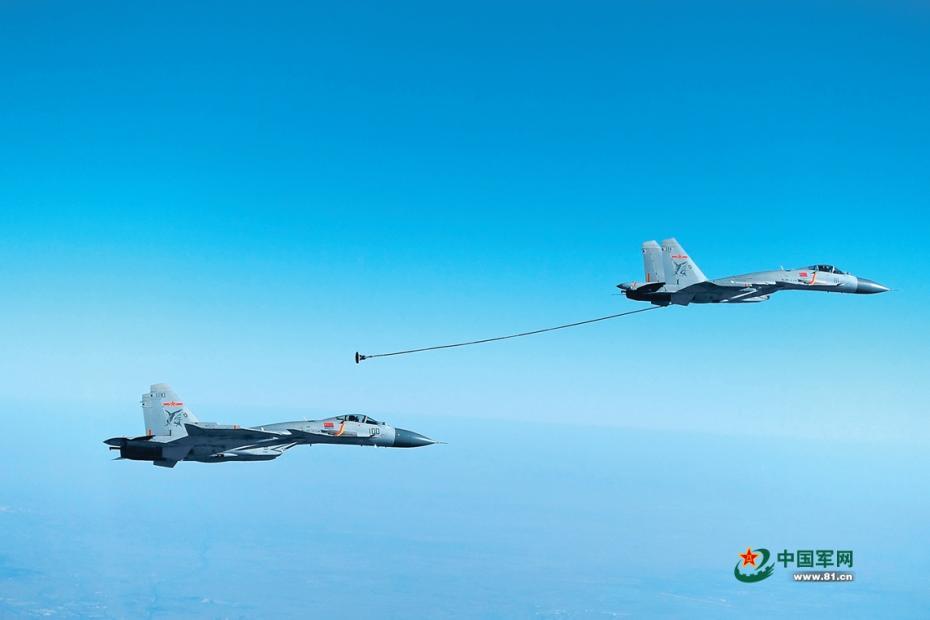Zwei Trägergestützte Flugzeuge heben ab, um die Luftbetankung zu trainieren. Die Piloten sollen beim Training ihre Flugtechnik und mentale Belastbarkeit verbessern sowie die Kompetenz bei Kampfhandlungen erhöhen.