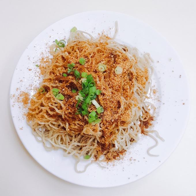 Garnelenrogen-Nudeln sind ein beliebtes Gericht in Gebieten, die von der kantonesischen Kultur beeinflusst werden. Es wird gesagt, dass das Gericht aus Macao stammt. Aus salzigem Garnelenrogen werden Nudeln hergestellt. Das Gericht wird immer mit Garnelenpaste und Sojasaucendressing serviert.