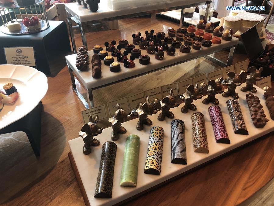 Das Foto zeigt Schokoladendesserts auf einer Werbeveranstaltung des Hong Kong Disneyland Resort