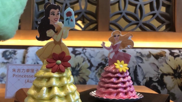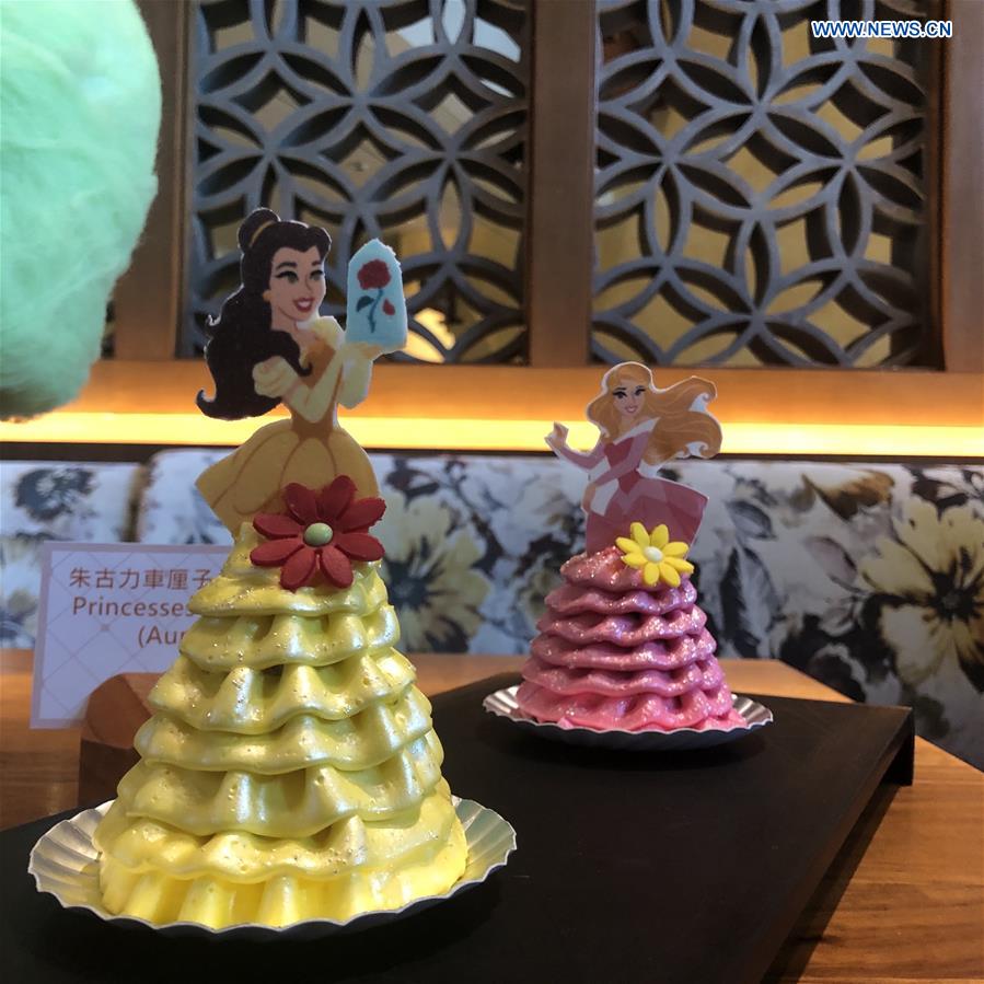 Das am 16. Dezember 2019 aufgenommene Foto zeigt Desserts mit Verzierungen der Disney-Prinzessin auf einer Werbeveranstaltung des Hong Kong Disneyland Resort