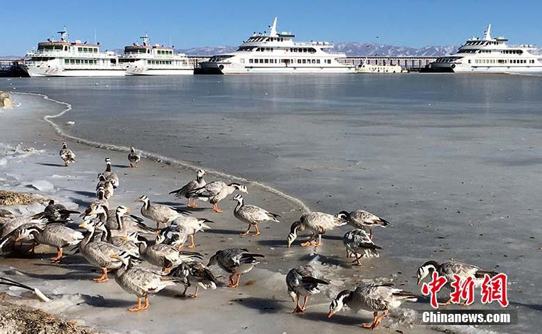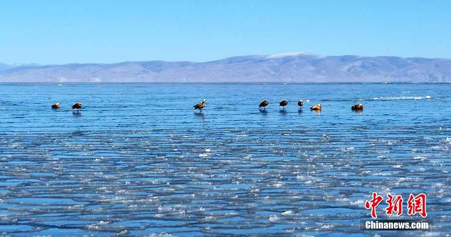 Einige Enten spielen am Ufer des Qinghai-Sees (Zhao Haimei/ Chinanews)