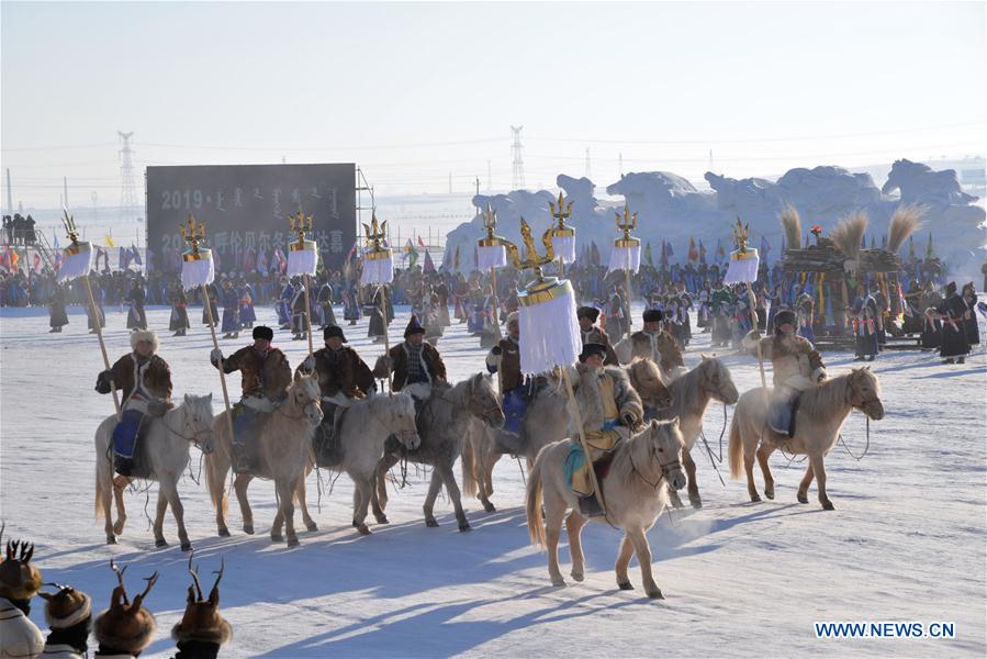 Eine Aufführung während der Eröffnungszeremonie der 2019 Hulun Buir Winter Nadam Fair in Hulun Buir, der autonomen Region der Inneren Mongolei in Nordchina. [Archivfoto/Xinhua]