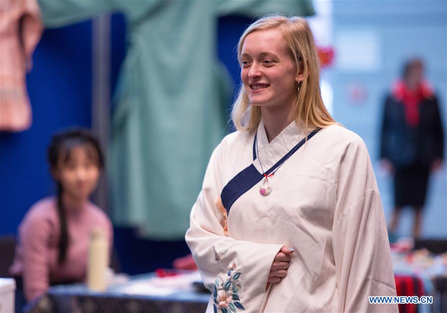 Ein deutsches Mädchen in traditioneller Han-Kleidung nimmt am 23. Januar 2020 in Mannheim an einer Feier teil, um das chinesische Neujahr zu begrüßen.