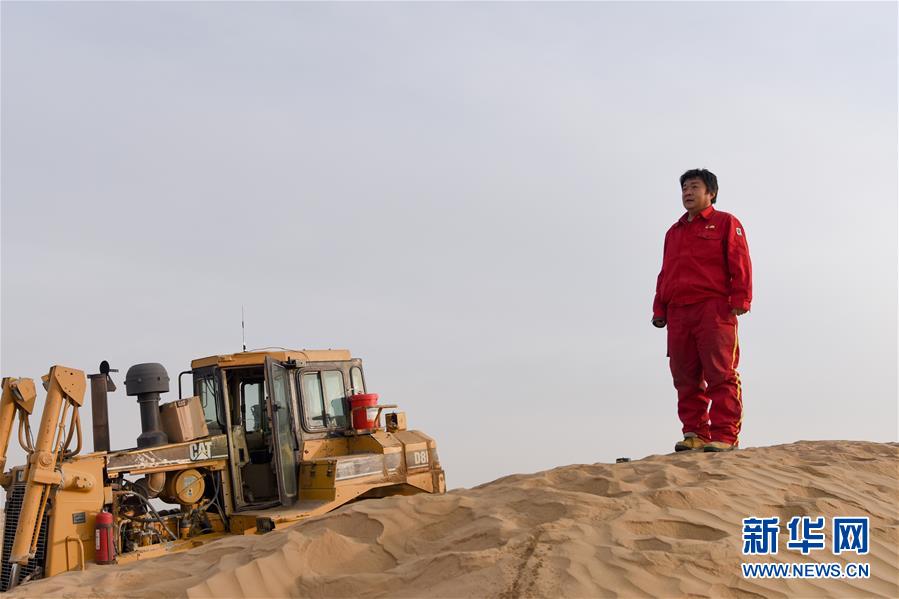 Wegen der Inbetriebnahme zweier Ölerschließungsprojekte ist Hu seit vergangenem Oktober in der Taklamakan-Wüste im Einsatz. Mit seinem Bagger soll er vor der geografischen Prospektion zuerst den Weg ebnen, und zwar rund 10 Kilometer pro Tag.