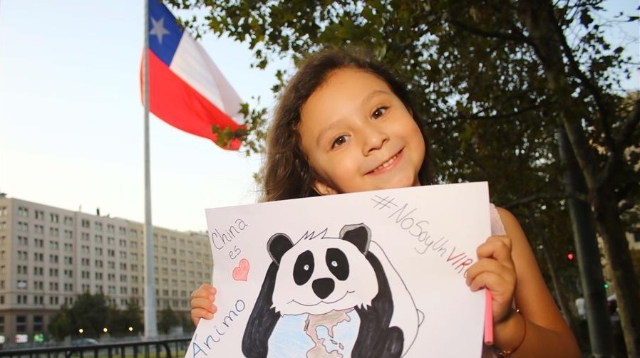 Danna Suarez, ein 5-jähriges Mädchen, zeigt ihre Zeichnung als Aufmunterung für China im Kampf gegen das neuartige Coronavirus in Santiago in Chile [Foto vom 10. Februar 2020, Xinhua]