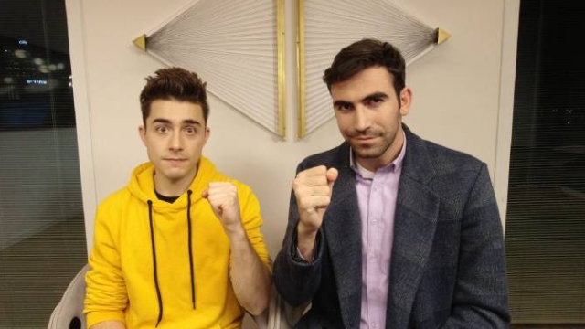Raz Gal Or (rechts) und Brian O'Shea feuern China in einem Video an, in dem sie den Prozess des Sammelns medizinischer Hilfsgüter in Tel Aviv, Israel, am 25. Januar dokumentieren.