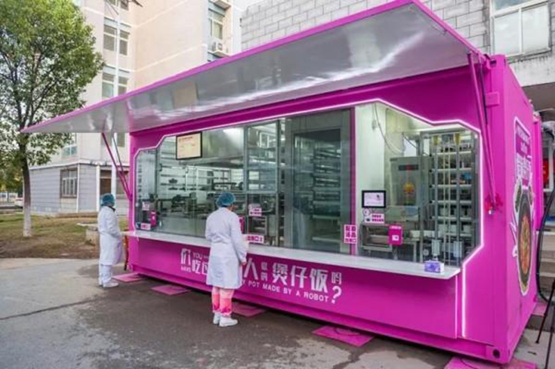 Ein Automat in einer Quarantänestelle in Wuhan funktioniert rund um die Uhr und kann bis zu 120 Portionen chinesisches Essen pro Stunde bereitstellen. Die Zubereitung einer einzelnen Portion dauert nur 15 Sekunden. Der Kochprozess wird hundertprozentig durch KI gesteuert.