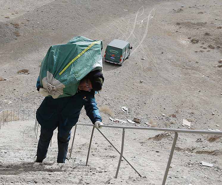 Am 15. Januar lieferte Ge Jun, ein Zusteller von der China Post in Golmud in der nordwestchinesischen Provinz Qinghai, Pakete und Briefe in einer Höhe von 4000 Metern über dem Meeresspiegel aus. Er musste auf eine steile Leiter klettern, die eine Schrägstellung von 70 Grad hat und auf der es 156 Treppen mit einer Breite von 20 Zentimetern gibt.