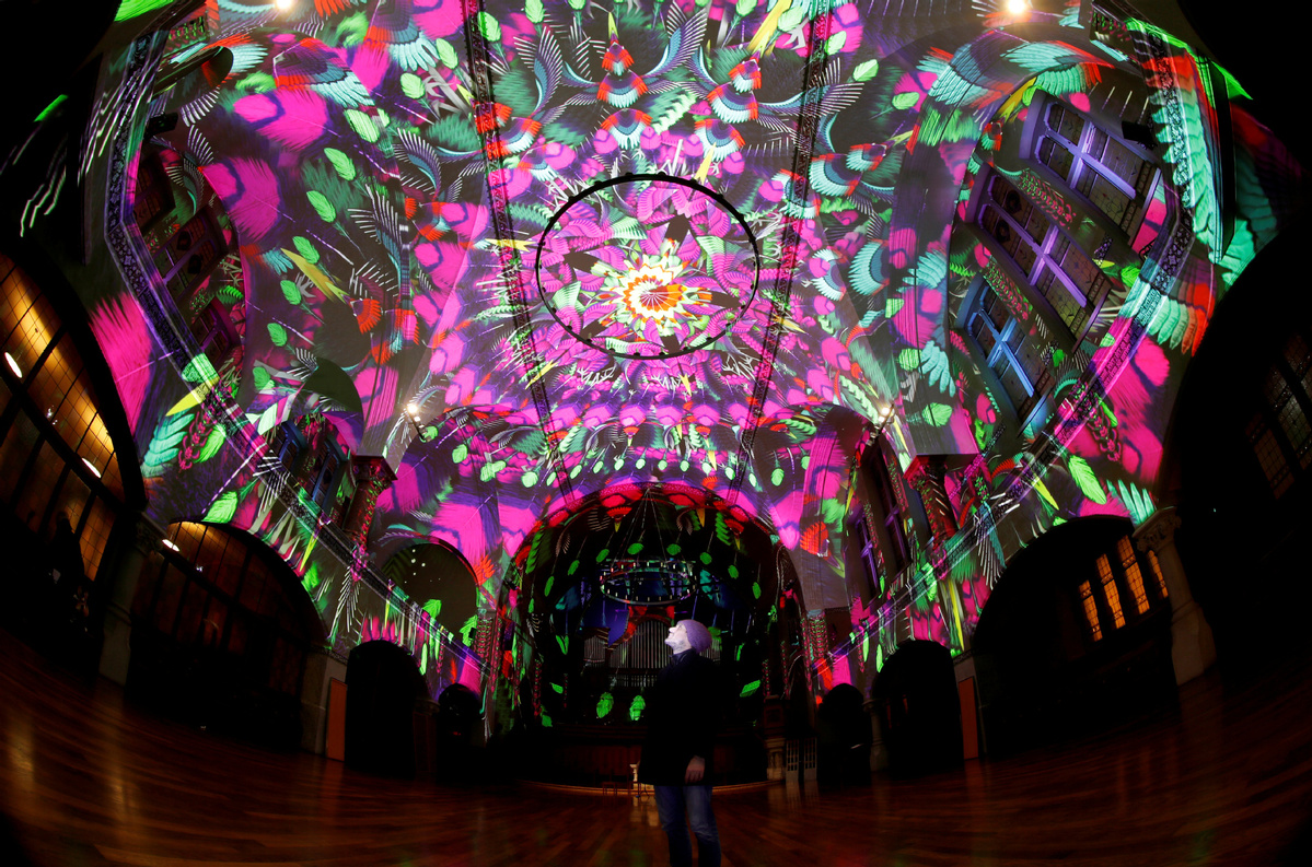 Am 31. Januar 2020 ist während einer Probe des Multimedia-Projekts Genesis 2020 in der St. Jakob-Kirche in Zürich eine Lichtprojektion zu sehen. [Foto/Agenturen]