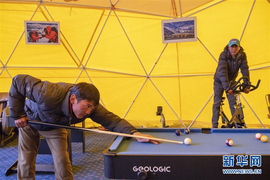Bergsteiger spielen im Everest-Lager Billard (Foto vom 1. Mai).