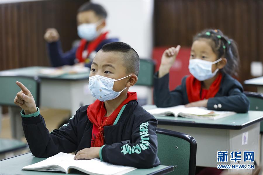 Schüler in der Jiuzhaigou-Grundschule. Das Erdbeben hatte die Schule ernsthaft beschädigt und das neue Schulgebäude wurde im September 2019 in Betrieb genommen.