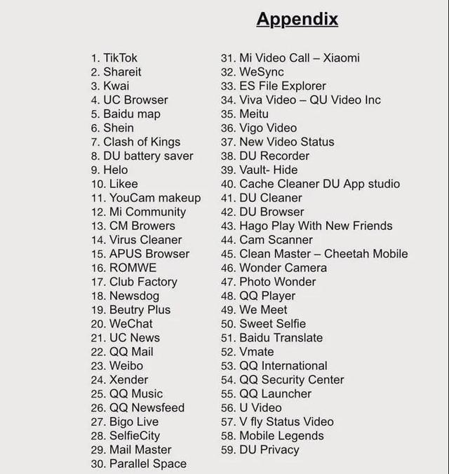 Der beliebte Kurzvideo-Social-Media-Dienst TikTok steht oben auf der schwarzen Liste. Mit 120 Millionen Benutzern gilt Indien als größter Überseemarkt von TikTok, dessen Muttergesellschaft die in Beijing ansässige Firma ByteDance ist. Darüber hinaus stehen auch diverse Apps von Xiaomi und eine Reihe von bekannten Smartphone-Tools wie Baidu Map, Wechat, Weibo, UC Browser, QQ International, Parallel Space, Xender, Shareit und Cam Scanner auf der Liste der indischen Behörden. Bisher ist unklar, ob die Regierung in Indien eine Löschung der betroffenen Apps aus den Stores von Google, Apple & Co anstrebt.