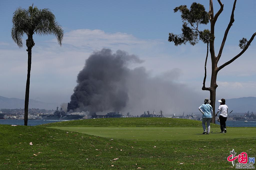 Hubschrauber im Einsatz: Feuer auf US-Kriegsschiff brennt weiter
