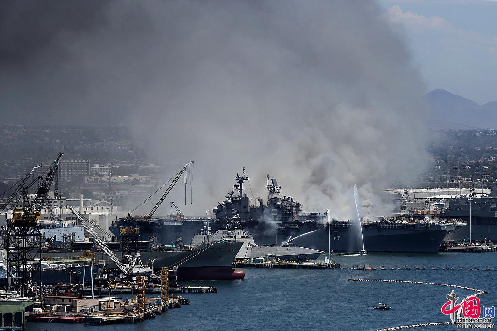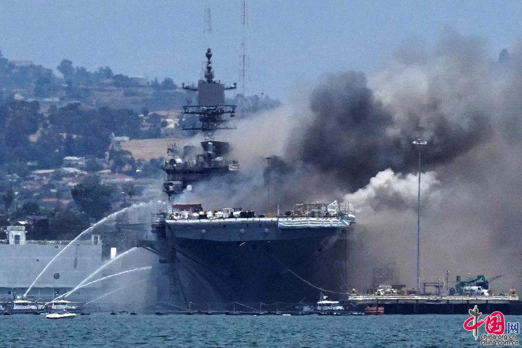 US-Medienberichten zufolge ist das Feuer auf der USS Bonhomme Richard, einem amphibischen Angriffsschiff der amerikanischen Marine, bis zum Montagabend (Ortszeit) noch nicht gelöscht worden. Um den Brand zu stoppen, werden momentan auch Helikopter eingesetzt. Auf dem Kriegsschiff, das im Hafen von San Diego vor Anker lag, wurden zum Zeitpunkt des Unglücks Wartungsarbeiten durchgeführt, für die sich rund 200 Personen an Bord befanden. Bis dato sind mindestens 57 Personen, darunter Soldaten und auch Zivilisten, verletzt. Es ist noch unklar, wie schwer das Kampfschiff durch das Feuer beschädigt wurde.