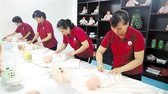 Um den Mangel an qualifizierten Arbeitskräften in der Branche zu beheben, hat die Provinzregierung 22 Maßnahmen ergriffen. Arbeitnehmer aus registrierten armen Haushalten in benachbarten Provinzen werden dabei bevorzugt und erhalten spezielle Schulungen in vier besonders gefragten Bereichen: Kinderbetreuung, Seniorenbetreuung, Haushaltsarbeit und heimische Krankenpflege. Bis 2021 will Guangdong im Rahmen des Projekts 50 vorbildliche Ausbildungszentren für Haushaltshilfen einrichten sowie 100 führende Unternehmen in dieser Branche aufbauen und unterstützen. Jedes Jahr sollen mindestens 200.000 Menschen ausgebildet werden und mindestens 400.000 Menschen soll zum Eintritt in die Branche verholfen werden. Bisher wurden über 300.000 Menschen als Haushaltshilfen mit verschiedenen Spezialbereichen ausgebildet. In der ganzen Provinz arbeiten derzeit über eine Million Menschen in der Branche.