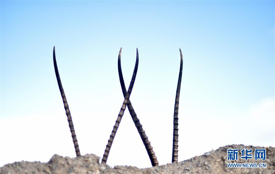 Die Hörner zweier Männchen. (Foto: Jue Guo/ Xinhua)
