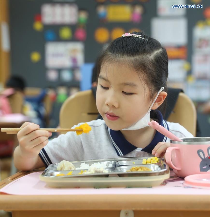 Eine Schülerin isst zu Mittag in einer Grundschule im Bezirk Changning in Shanghai. An der Schule wird die Initiative „Leerer Teller“ durchgeführt. (Foto vom 2. September, Xinhua/ Ding Ting)
