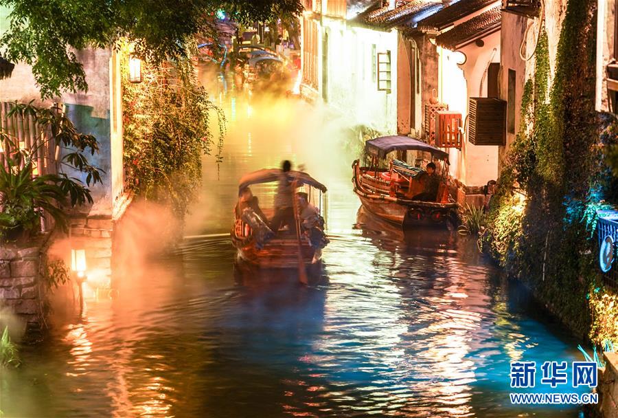 Antike Wasserstadt Zhouzhuang beleuchtet