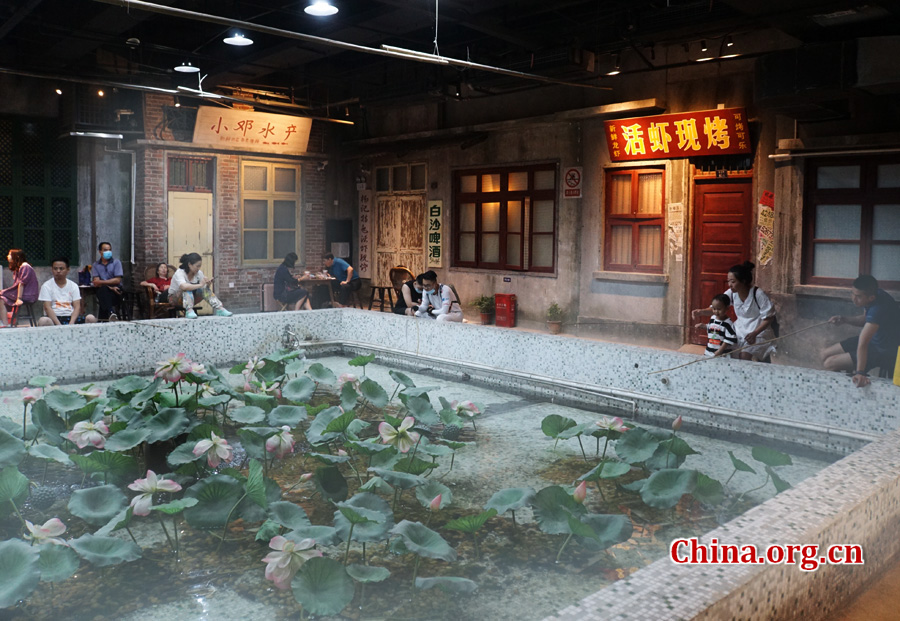 Ein Flusskrebsteich im Super Wenheyou, einem Restaurant, das Straßenszenen im alten Stil aus den 1980er Jahren in Changsha in der Provinz Hunan nachstellt. [Foto: Wan Lina/China.org.cn]