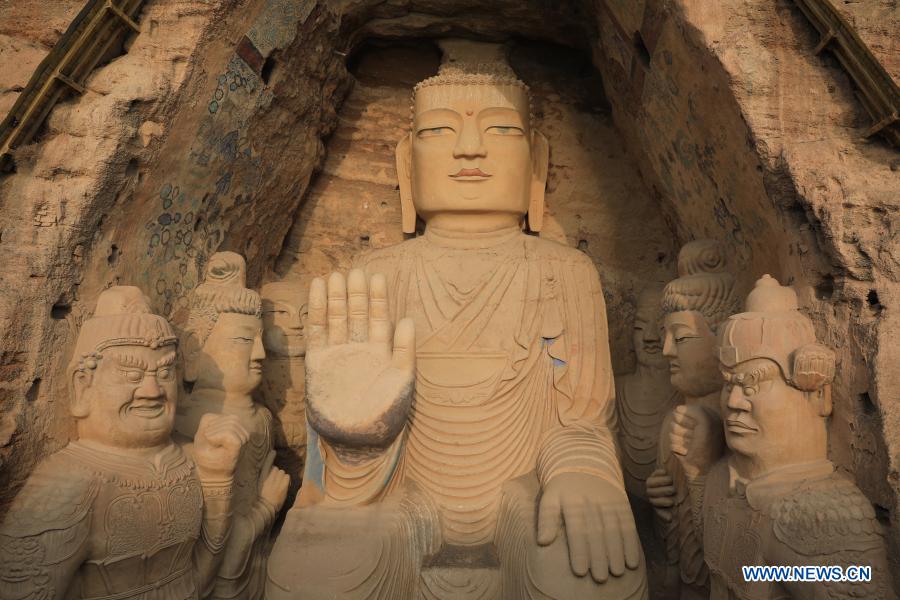 Das Foto vom 19. November 2020 zeigt die Grotte 13 der Tiantishan-Grotten in der Stadt Wuwei in der nordwestchinesischen Provinz Gansu. Es wird angenommen, dass die Tiantishan-Grotten bereits vor 1.600 Jahren gebaut wurden. (Xinhua/Du Zheyu)