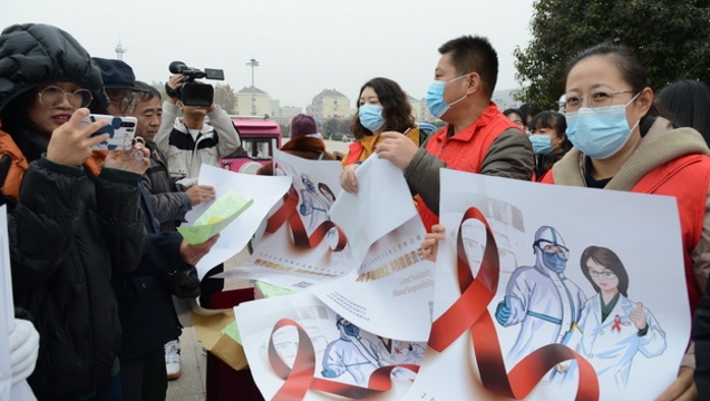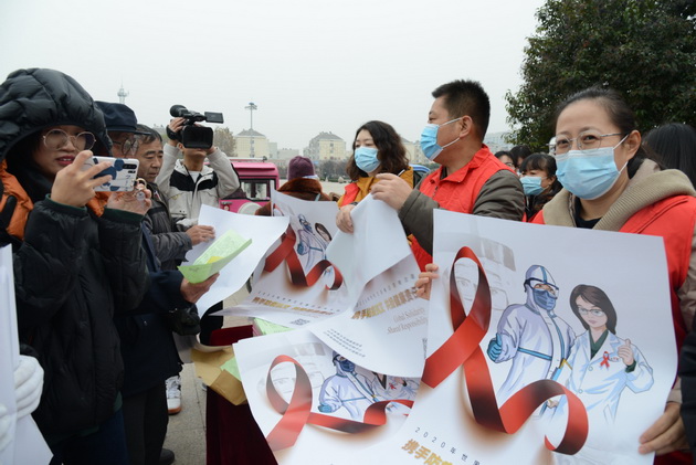 In Liaocheng in der Provinz Shandong werben Ärzte in der Öffentlichkeit für HIV/AIDS-Schutz.