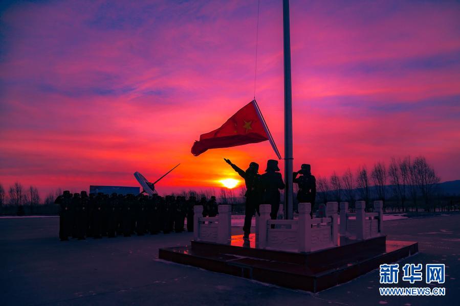 Offiziere und Soldaten des Ostpol-Postens halten bei Sonnenaufgang eine Flaggenzeremonie ab (Foto vom 4. November).