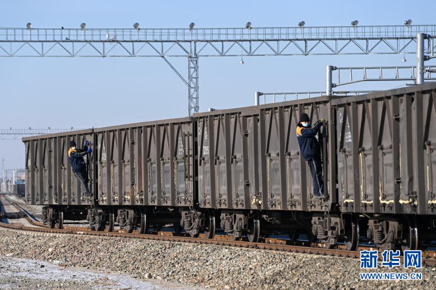 Rangierer arbeiten am 6. Februar am Trockenhafen Korgas.