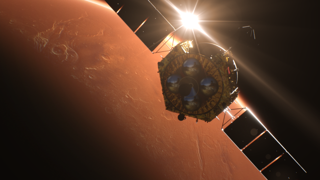 Abbildung der Tianwen 1-Sonde, die in die Umlaufbahn des Mars eintritt.